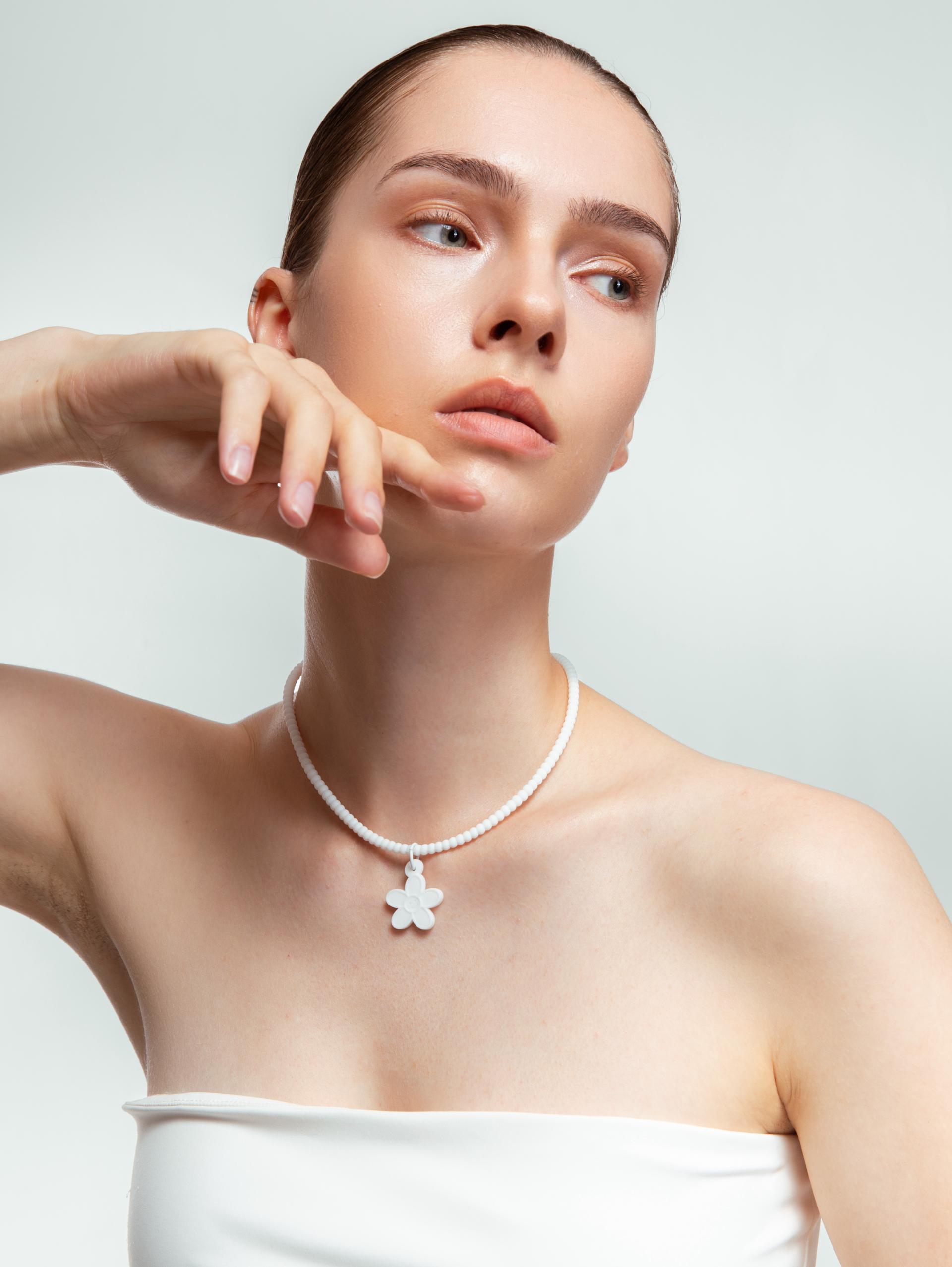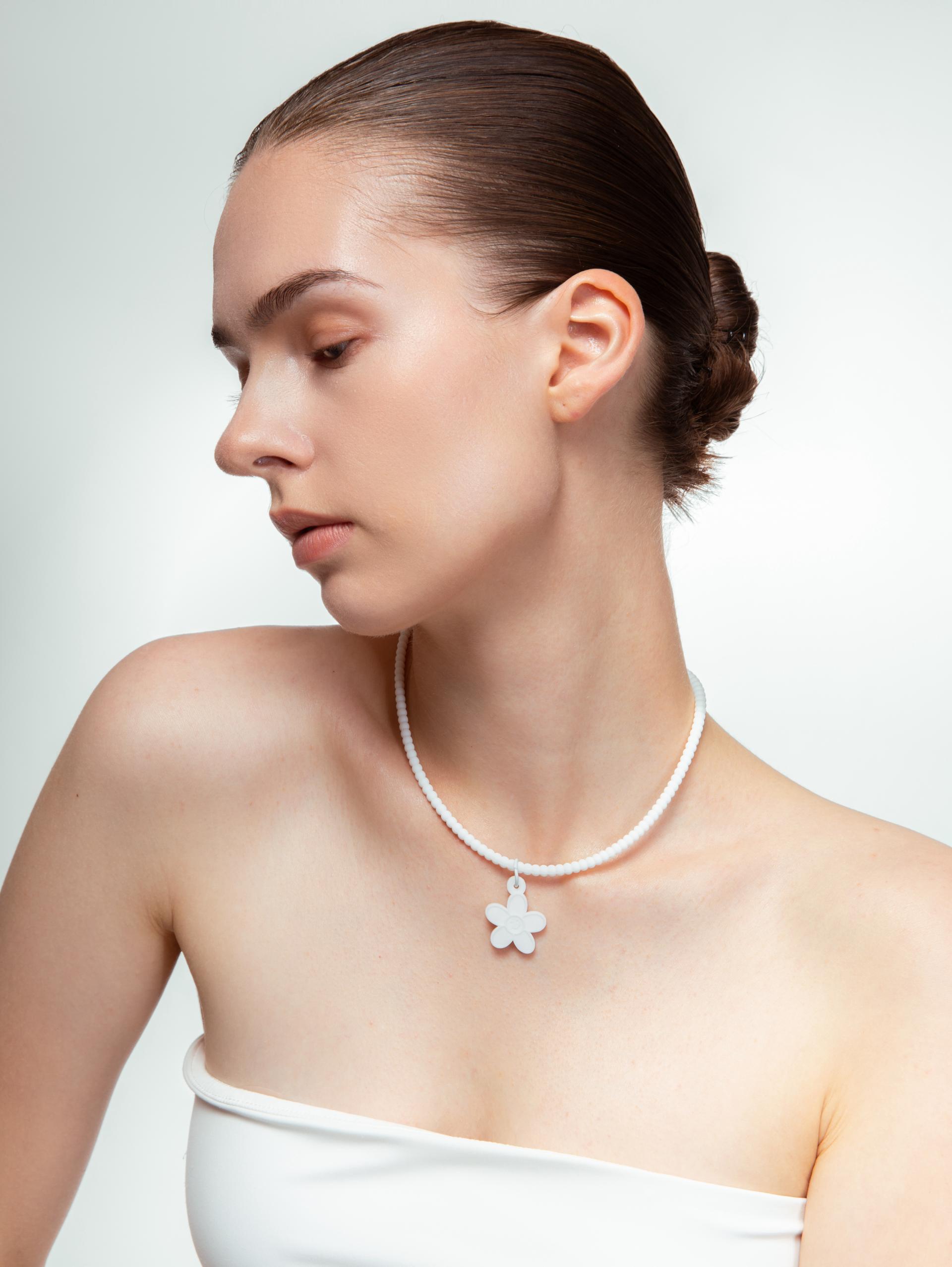 WHITE SILICON DAISY NECKLACE